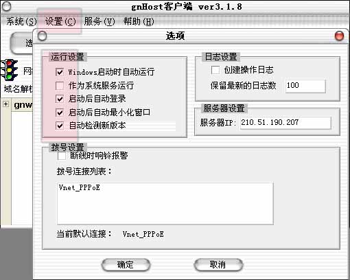 需要將金萬維動態域名解析軟件gnHOST設置為開機就啟動,這樣才不用每次重啟電腦都要手工去打開動態域名軟件,點擊菜單->設置,然後如下圖對選項打勾,點擊確定後就可以完成開機自啟動的設置: