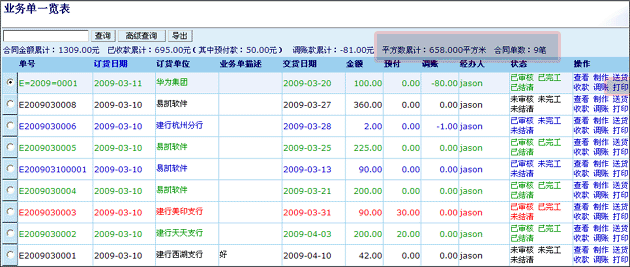 點評:對於噴繪寫真公司,統計指定時間段的接單平方數是很重要的,此項功能可以讓用戶快速了解到指定時間段的噴繪寫真的平方數。