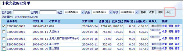 點評:可以將所有未收完款的業務單、客戶應收賬款導出到Excel表中,方便用戶在Excel表中對數據進行進一步的彙總統計。
