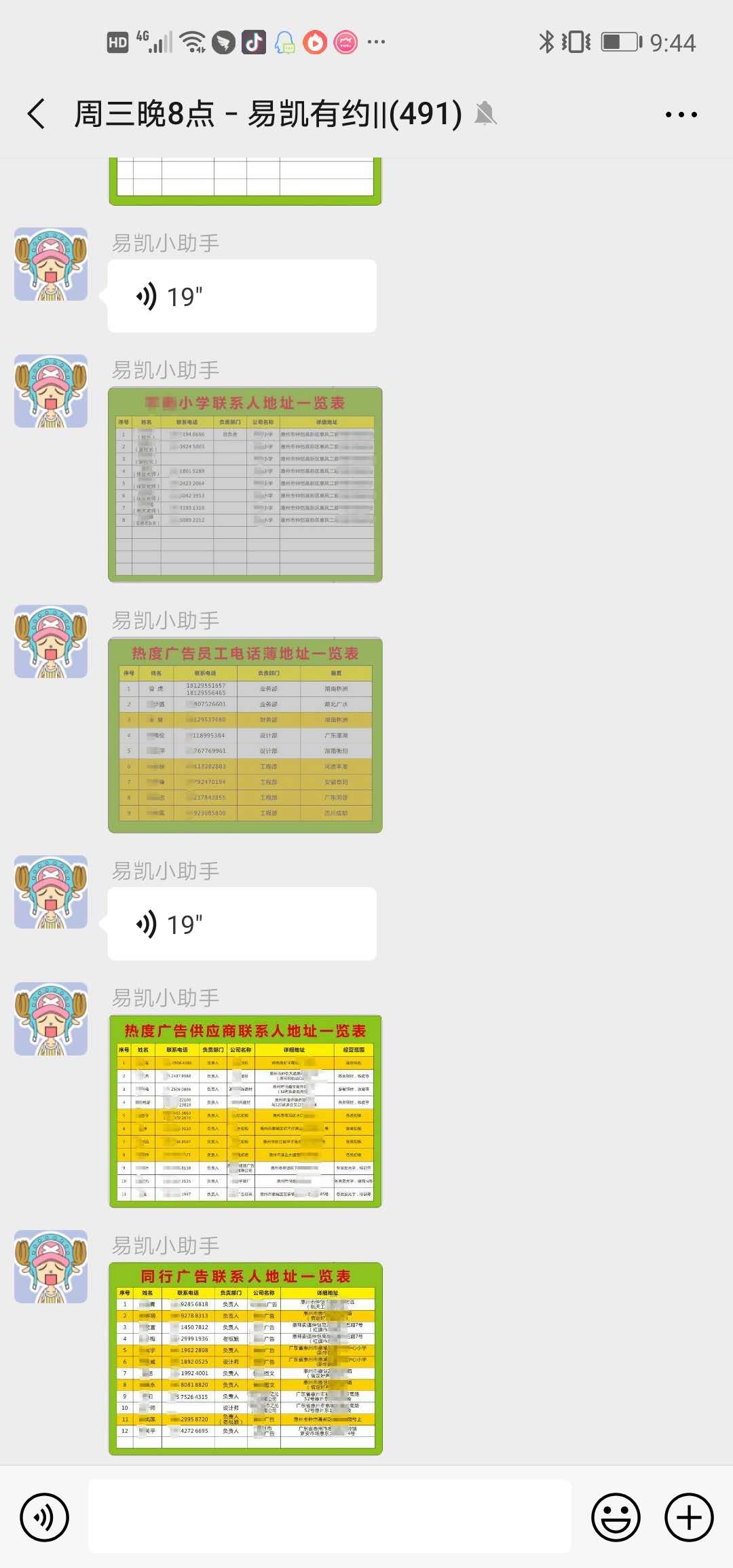 因yin為wei這zhe個ge電dian話hua信xin息xi地di址zhi這zhe些xie牽qian涉she到dao一yi個ge個ge人ren隱yin私si問wen題ti,所suo以yi我wo就jiu打da了le馬ma賽sai克ke,這zhe個ge是shi我wo們men的de一yi個ge做zuo法fa,把ba它ta做zuo成cheng了le一yi本ben通tong訊xun錄lu手shou冊ce,然ran後hou通tong過guo開kai會hui的de形xing式shi,讓rang他ta們men把ba每mei一yi位wei客ke戶hu/供應商,包括經常互相幫助的一些同行廣告公司電話全部存入到我們公司每一位同事的手機上麵。
