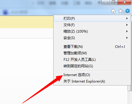 1.打開IE瀏覽器,進入主界麵, 點擊右上角【工具】選項,在彈出菜單欄中點擊打開【Internet選項】