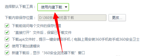 2.進入360瀏覽器設置界麵,找到【下載設置】,點擊下載選項複選框,將其更改為【使用內建下載】即可
