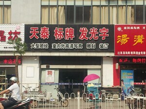 雲yun港gang市shi天tian泰tai廣guang告gao裝zhuang飾shi有you限xian公gong司si成cheng立li十shi幾ji年nian,擁yong有you數shu十shi台tai廣guang告gao設she備bei,通tong灌guan路lu有you店dian麵mian接jie業ye務wu,海hai州zhou開kai發fa區qu有you工gong廠chang加jia工gong製zhi作zuo,是shi港gang城cheng較jiao大da的de廣guang告gao製zhi作zuo型xing公gong司si,位於通灌南路58號,主要提供設計製作國內影視印刷品燈箱霓虹燈路牌廣告等等產品和服務。