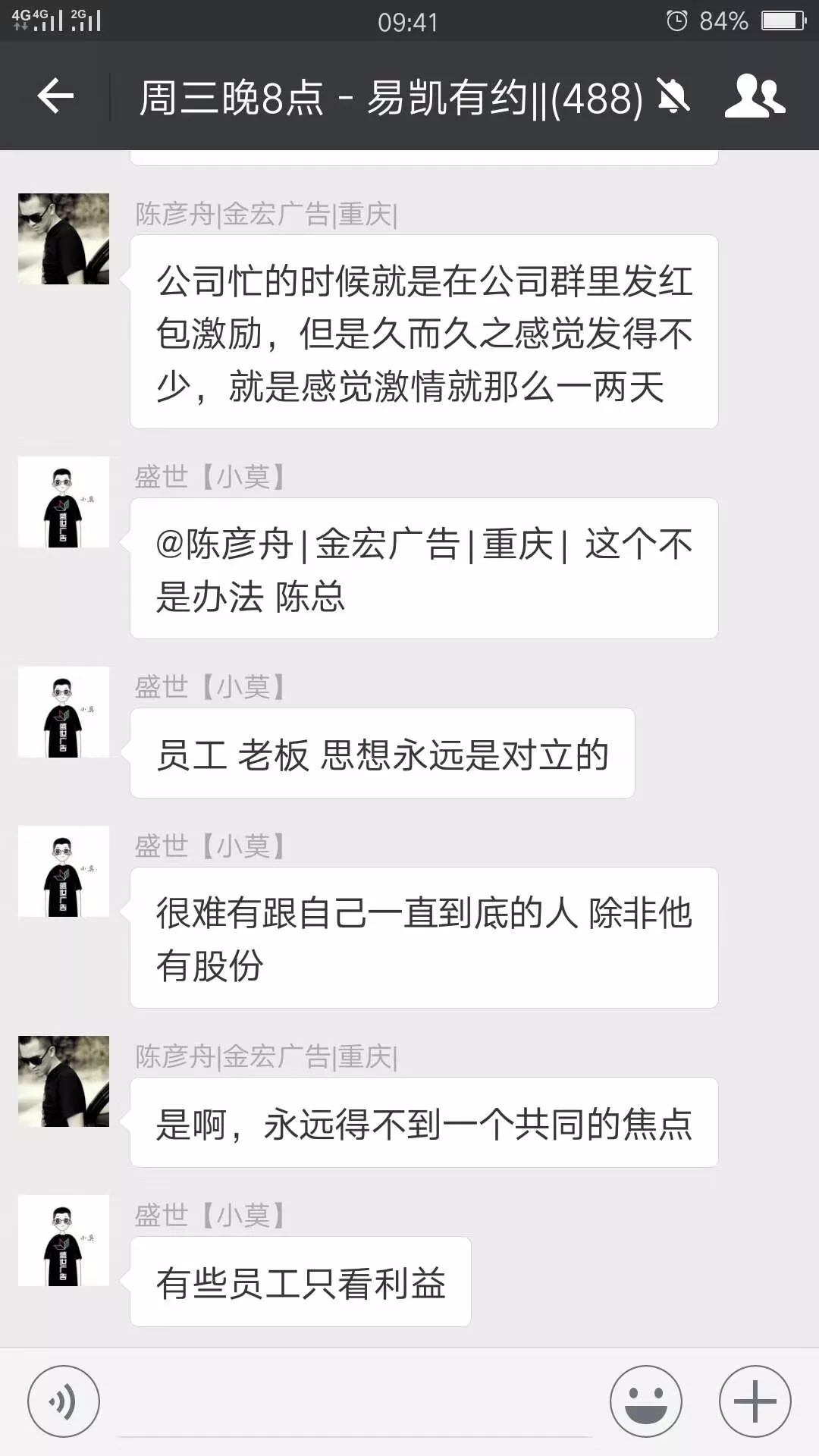 一家廣告公司,一家企業最大的危機就是中高層沒有動力,可能技術、經驗、資金什麼都不缺,但就是半死不活的等著、靠著、混著、要著。這是我們廣告公司發展的最大的瓶頸,導致基層沒有狀態。換句話說中高層的高度就是我們廣告公司的高度。