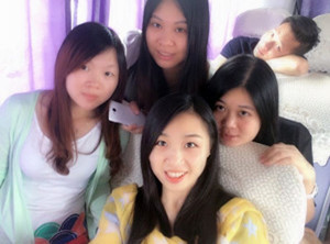 次日清晨,用過豐盛的自助早餐,女生們去了天後宮參拜媽祖和騎自行車。不知道媽祖是否管婚姻呢?
