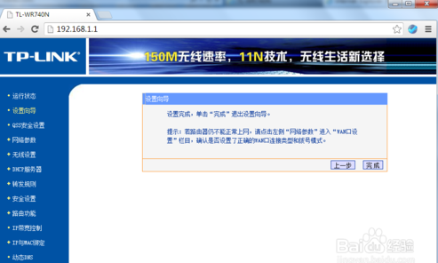 設置好上一步後,進入到設置向導完成界麵,點擊“完成”即可完成TP-LINK路由器上網設置。