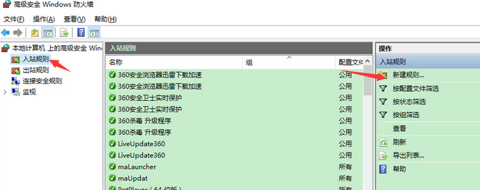 點擊--入站規則,再點擊新建規則