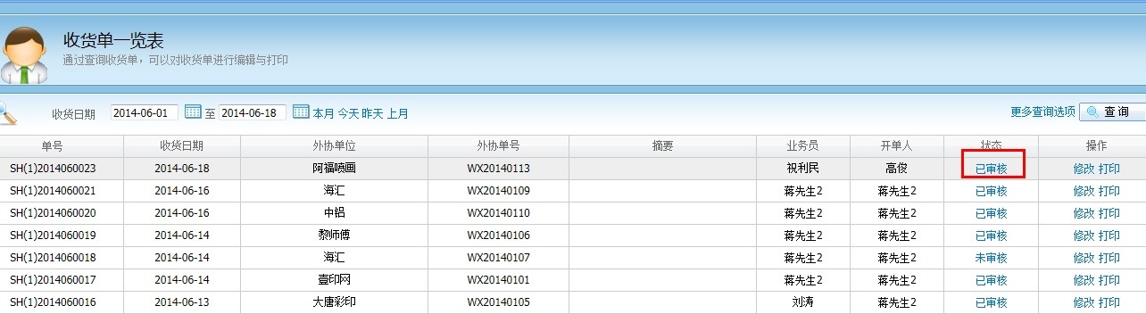 第一步:點擊外協收貨單一覽表,查看已開的收貨單。