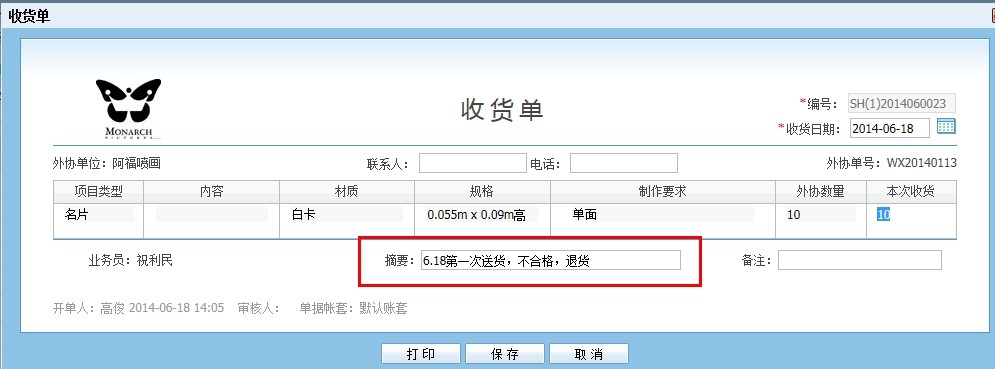 第四步:保存並不審核,等再次收貨後審核通過,修改摘要即可。