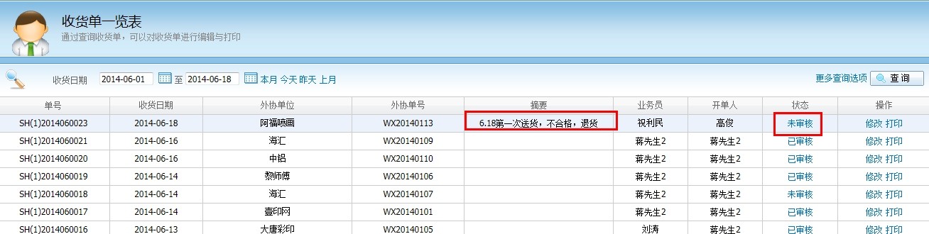 第三步:點擊修改,修改摘要,備注好不合格退貨。