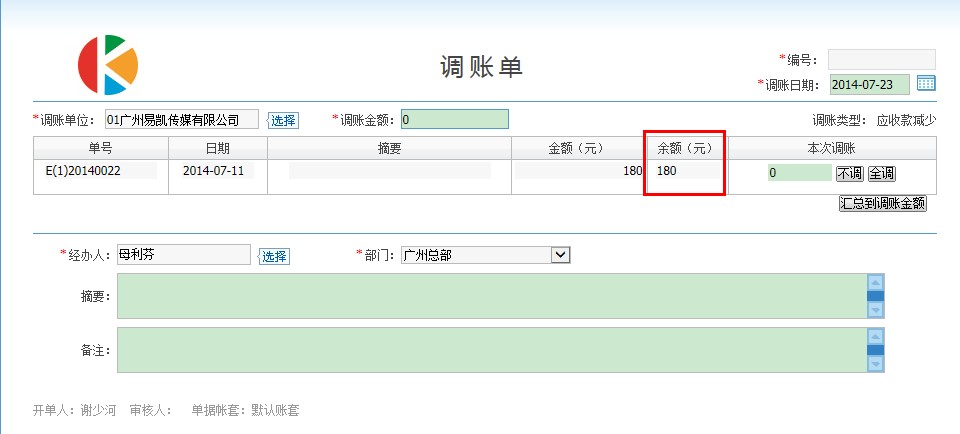(四川奧克廣告)問:調賬單上的餘額是什麼意思,它怎麼來的呢,是根據那個業務單金額來的嗎?