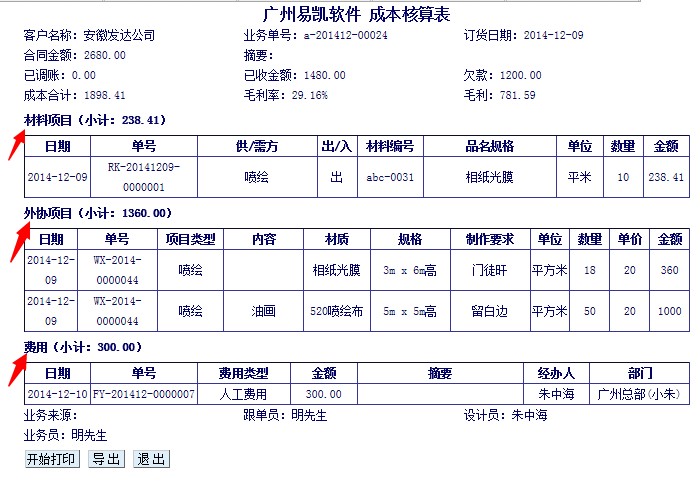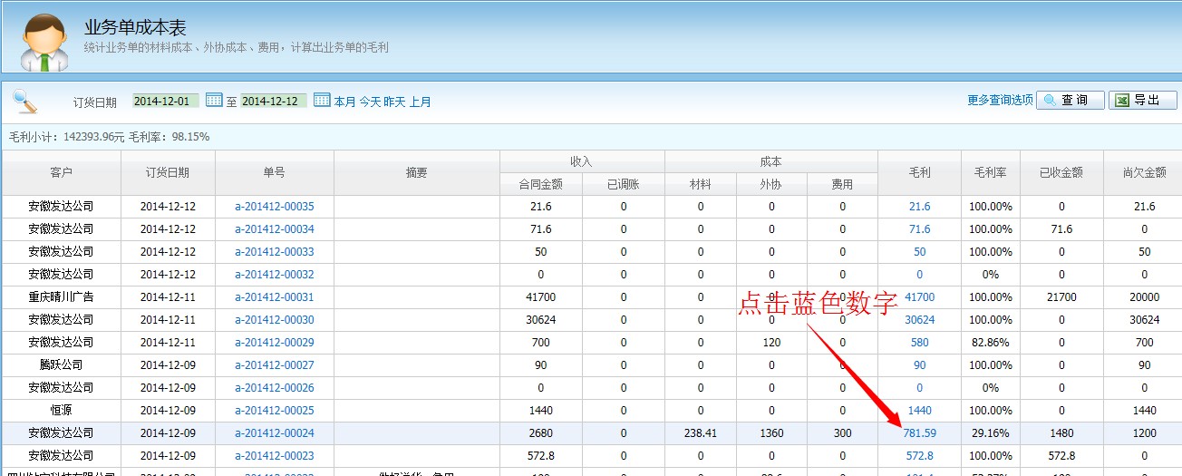 查業務單成本表的時候如何才能看到成本明細