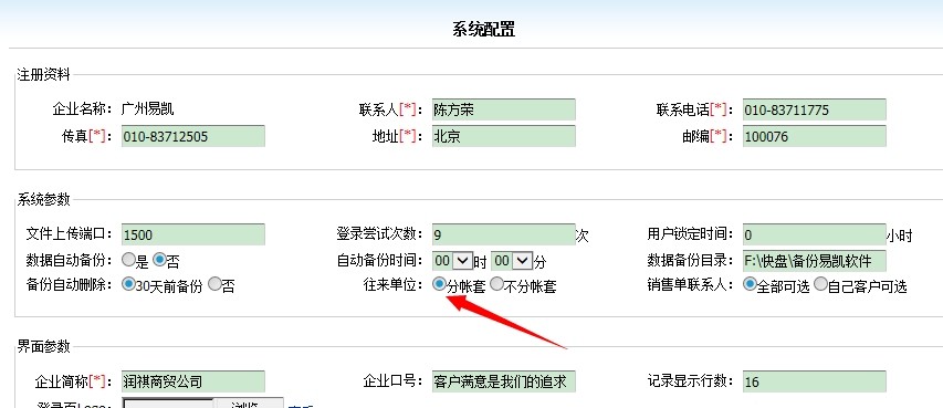 答:可以,在【係統管理】--【係統配置】中設置往來單位分賬套就行了。