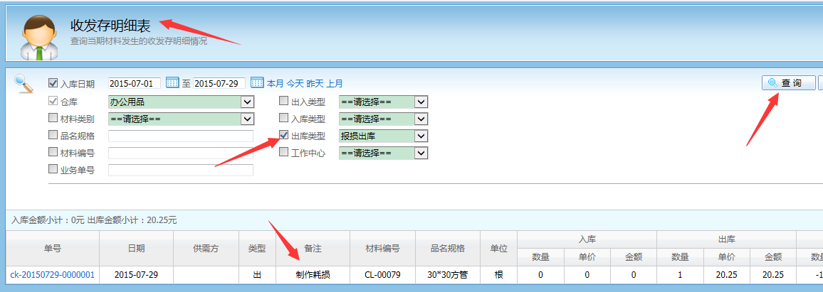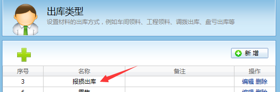 答:正常使用和報損的材料都開出庫單出庫,現特別針對報損的材料登記進行說明。可以先新增一個出庫類型為:報損出庫