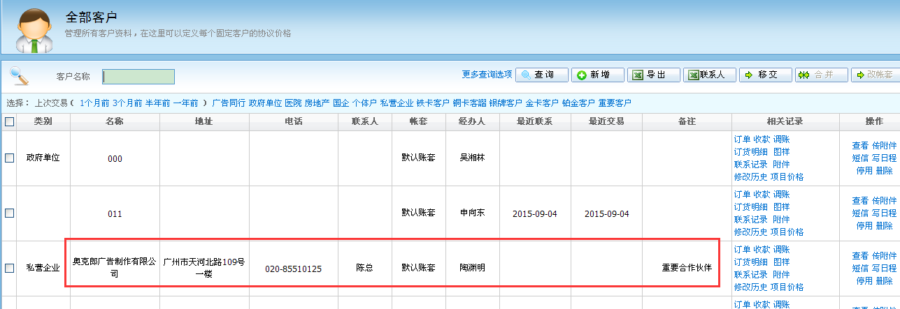 導入成功後,就可以在“客戶業務”——“全部客戶”中看到客戶信息
