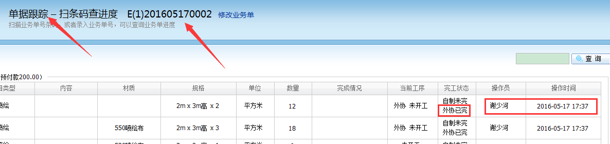 可以查看到該業務單的項目當前是外協已完工的狀態,