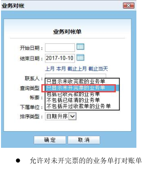 5、業務對賬的時候也可以選擇隻和未開完票的業務單對賬