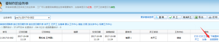 答:在業務單未完工的狀態下,可以進入製作--要製作的業務單,找到要登記產量的業務單,點擊進度跟蹤