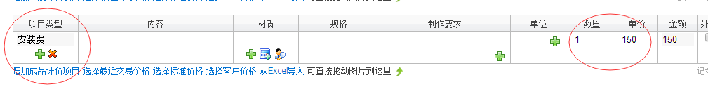 開業務單的時候,選擇“成品計價項目”,填寫數量為1,單價為安裝費用
