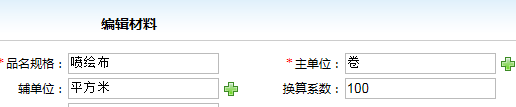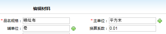 若設置主單位為平方米,輔單位為卷,那麼材料的換算係數為0.01