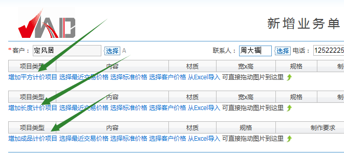 現在軟件開單默認有三種計價方式,分別是按平方計價、按長度計價和按成品計價:
