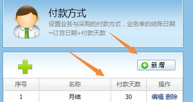 一,進入基礎數據-付款方式,新增付款方式與付款天數