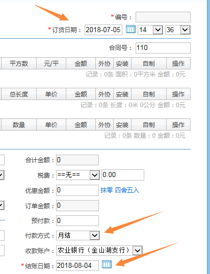 二、開業務單時,選擇付款方式,那麼結賬日期會根據訂貨日期加上付款天數自動算出