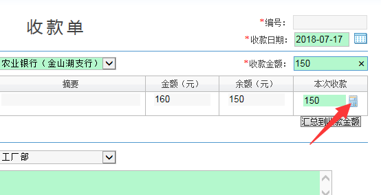 答:在開收款單的時候,如果需要按這一單的業務金額安裝一定的比例收款,可以如下圖所示操作。