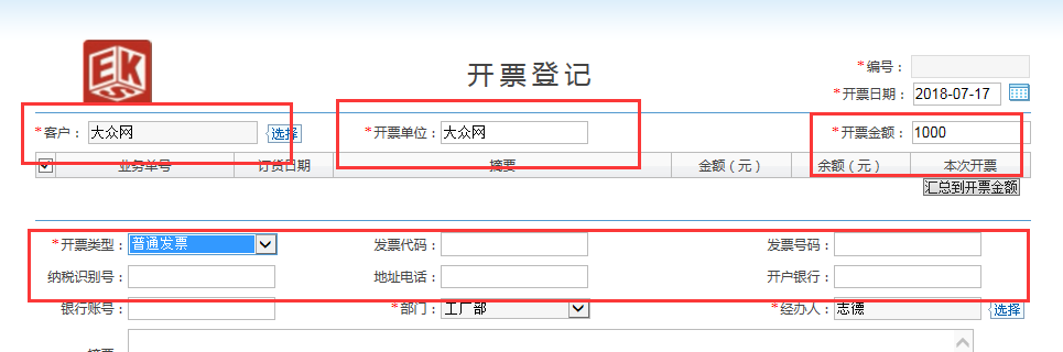 答:可以,進入賬務-開票登記,選擇開票的客戶名稱,可錄入開票單位,開票金額和稅號等信息