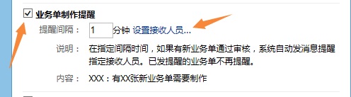 可以看到這裏有個業務單製作提醒,需要打上勾,並且設置接收人員(製作人員)