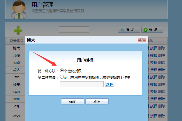 答:給開單人員的賬號設置權限,進入係統管理-用戶權限-個性化授權