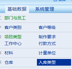 1.進入基礎數據-入庫類型,新建一個入庫類型為:盤盈入庫