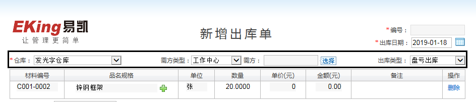 1.進入基礎數據-出庫類型,新增一個出庫類型為:盤虧出庫