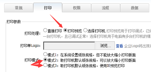 2、到【係統管理—係統配置—打印】,把打印模式調成打印預覽,以及調成模式2或者模式3都可以。