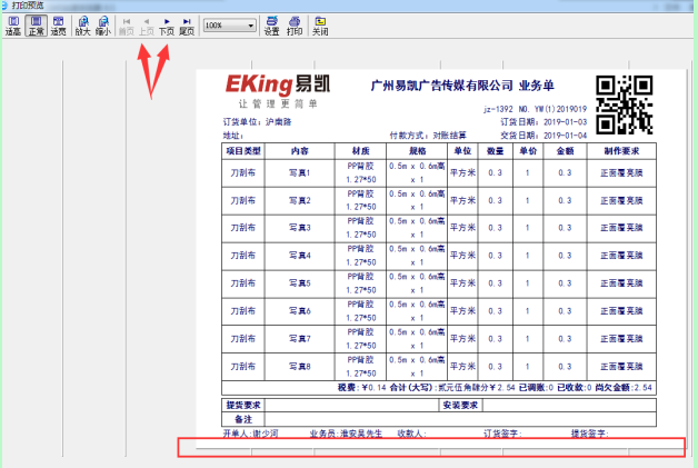 5、可以看到這張單據被分配成2頁才能打印,單據頁腳部分就無法在第一頁中顯示出來。