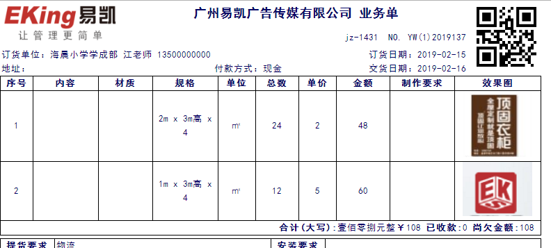 保存後打印業務單,也可以顯示項目效果圖,進入係統管理--係統配置--打印,設置打印顯示項目效果圖