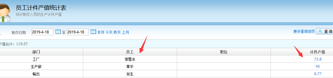登記好產量之後,就可以到產值--員工計件產值明細表查看