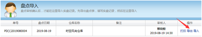 保存盤點表之後,再到庫存--盤點導入裏麵進行導入--保存