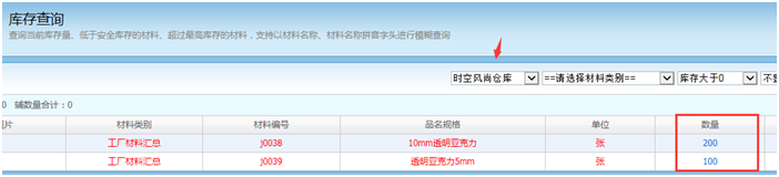 下麵演示一下開盤點單,以下圖的倉庫為例子,此時倉庫的庫存量如下,我們來對這個倉庫進行盤點: