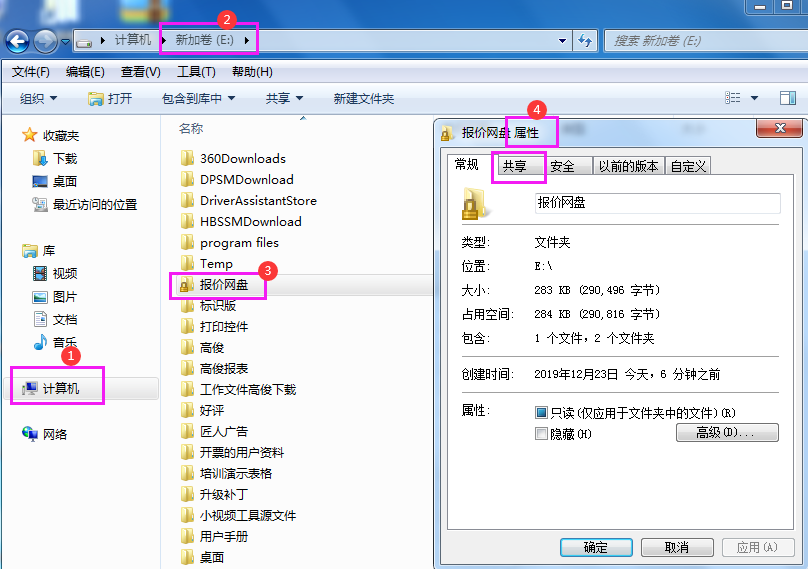 1,在計算機任意一個盤中,建一個文件夾,比如“報價網盤”屬性,共享。