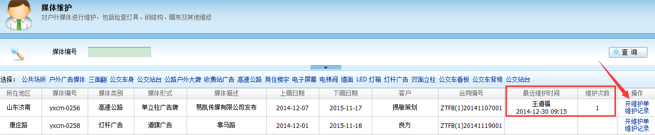 答:可以的,在媒體維護 裏麵有 開維護單,就會顯示統計