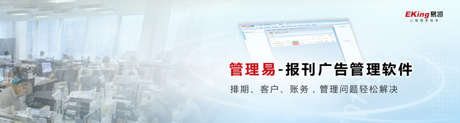 管理易-報刊廣告管理軟件專為報社雜誌社量身定製的管理軟件,基於久經考驗的JAVA企業版技術研發,彙聚數百家行業用戶的管理精髓,以客戶關係管理為基礎,包括了報刊媒體管理、合同管理、廣告排期管理、報刊訂閱管理、賬務管理、客戶管理等功能,提升運營效率,降低運營成本,任何時間,任何地點,輕鬆管理,讓經營者可以專注應對激烈的外部市場競爭。