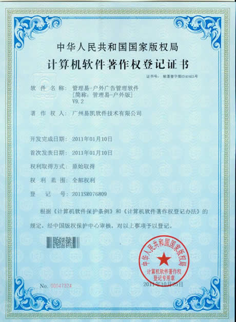 軟件著作權證書