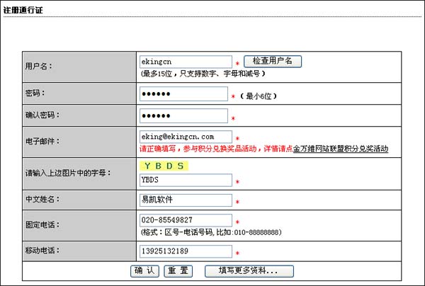 進入網址 http://www.gnway.com/user/user.php?item=reg2,填寫資料,注冊成為金萬維動態域名的用戶,如下圖: