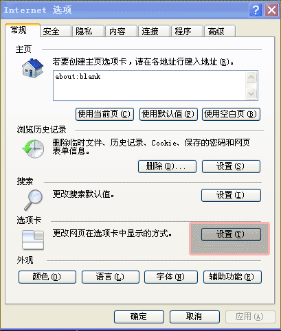 第二步:點擊上圖的“設置”,彈出如下圖窗口,修改“更改網頁在選項卡中顯示的方式”