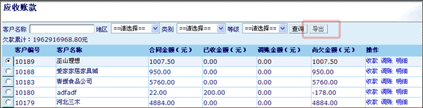 點評:可以將所有未收完款的業務單、客戶應收賬款導出到Excel表中,方便用戶在Excel表中對數據進行進一步的彙總統計。