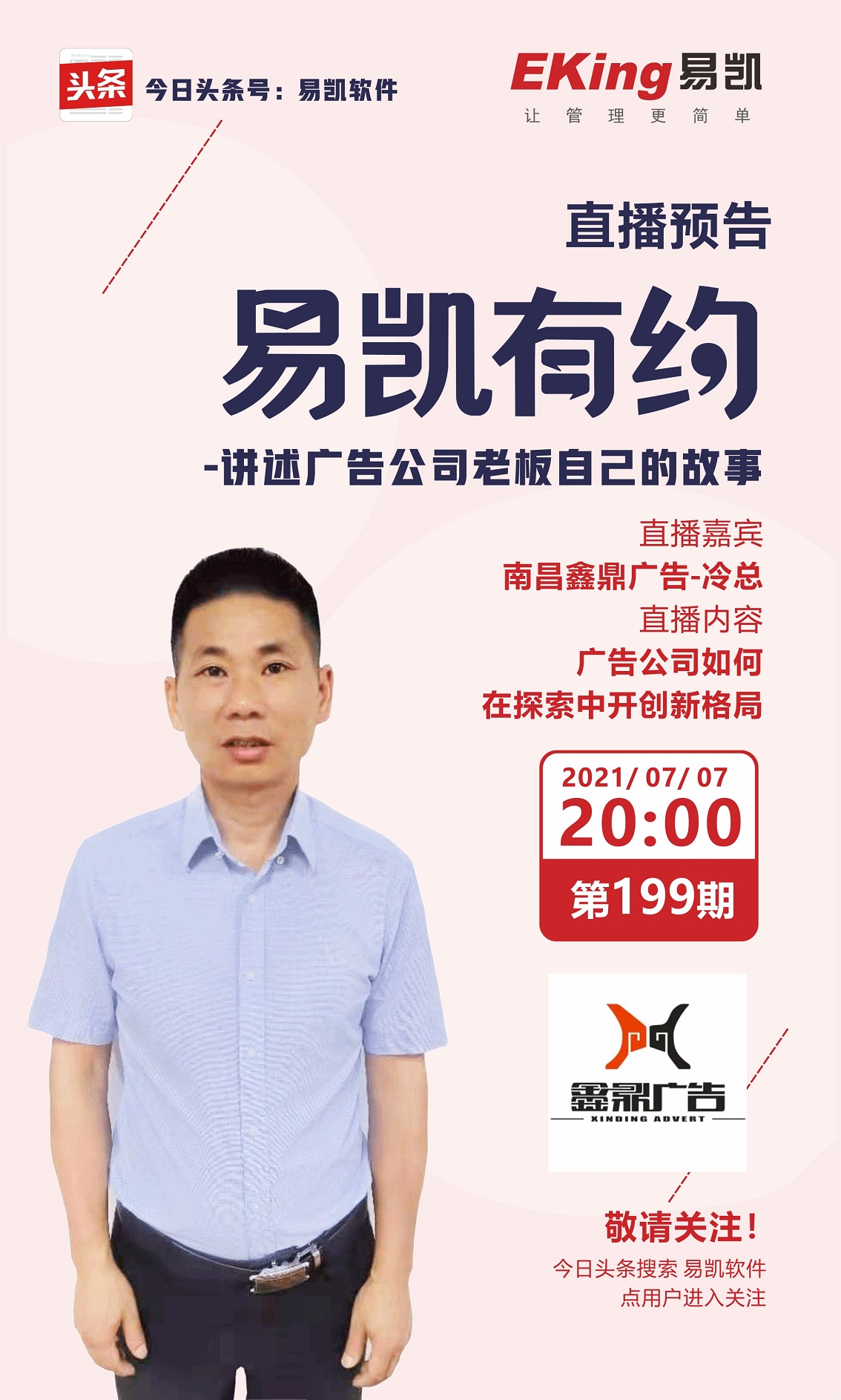 大家晚上好,非常榮幸有機會直播,也非常感謝易凱平台給我這一個機會來跟大家認識。南昌鑫鼎標識廣告有限公司是成立2004年,前身是做廣告發光字,到了2013年之後,我們就轉型做鈑金標識加工為主。我從事這個行業有將近20年nian了le,從cong學xue校xiao出chu來lai就jiu一yi直zhi在zai做zuo廣guang告gao,也ye是shi一yi個ge老lao油you條tiao了le。我wo們men公gong司si主zhu要yao是shi以yi加jia工gong單dan位wei為wei主zhu,幫bang廣guang告gao設she計ji院yuan這zhe些xie公gong司si加jia工gong,這zhe麼me多duo年nian也ye是shi經jing曆li了le很hen多duo的de坎kan坷ke,有you痛tong也ye有you快kuai樂le,在zai廣guang告gao行xing業ye摸mo爬pa滾gun打da,什shen麼me樣yang的de東dong西xi都dou經jing曆li過guo,管guan理li人ren員yuan這zhe一yi塊kuai非fei常chang的de痛tong苦ku。