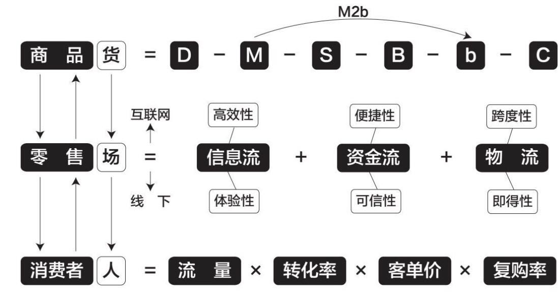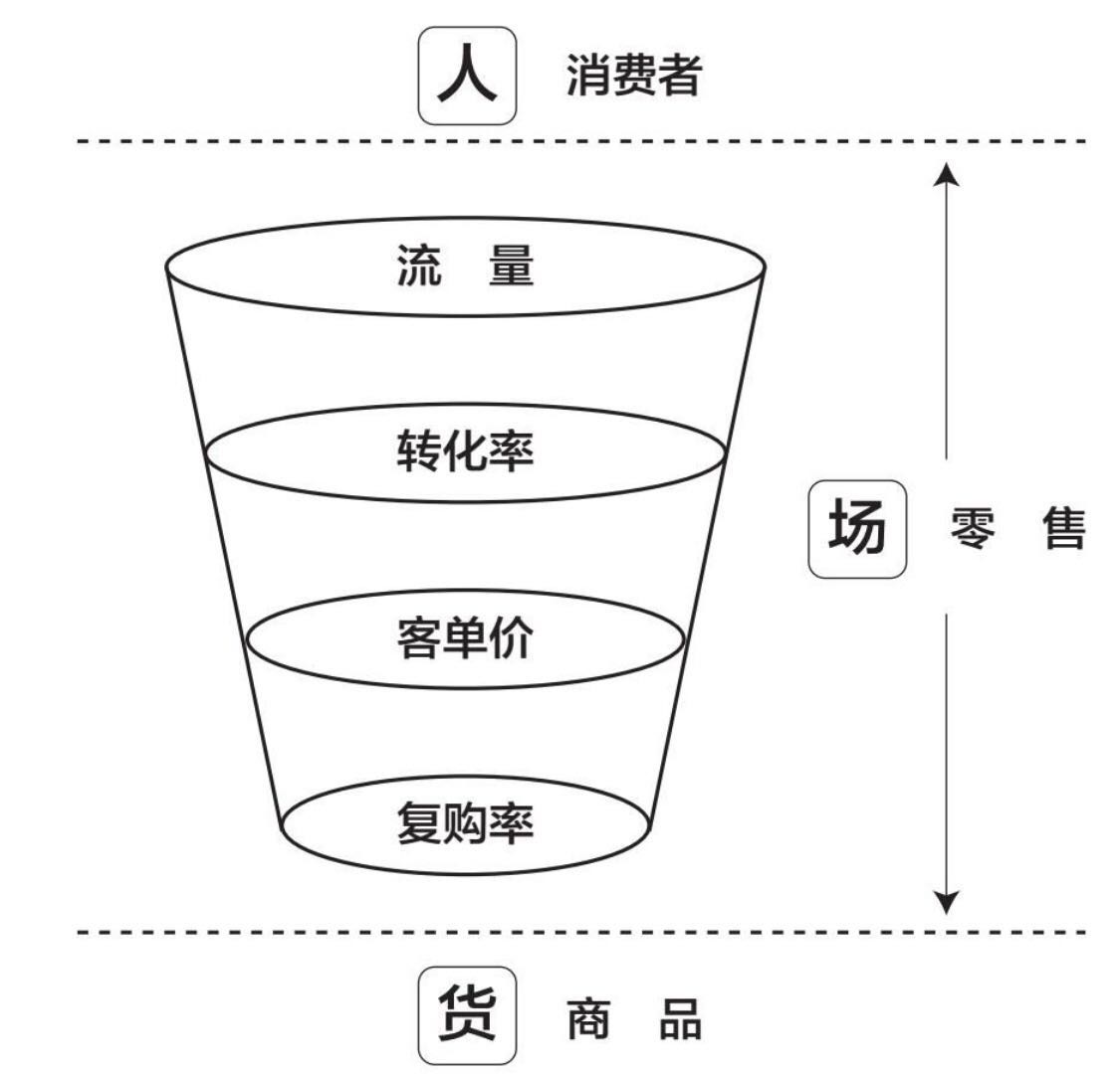新零售的概念,我們用專家的一句話就是:用大數據賦能進行人、貨、場的重構。這裏的“人”就是消費者,“貨”就是我們要買的東西,“場”其實就是連接人/消費者和貨之間的觸點。這個觸點可以是商場、也可以是線上的淘寶店、也可以是你的微商微店、甚至是頭條抖音,這個隻要是人和貨進行接觸的觸點都可以叫場。