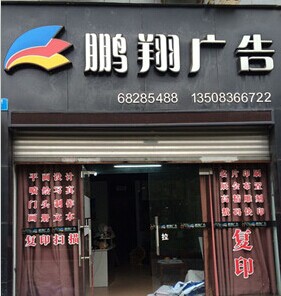 重慶鵬翔廣告印務標牌設計製作公司成立於1992年,是一家集平麵設計、亞克力、亞克力製品、戶外廣告、精工立體字、吸塑、平板彩印、各類高中低檔獎牌、標識標牌、機器設備銘牌、家具標牌銘牌、胸牌、校徽、胸章、安全消防環保警示標牌、標語掛圖掛畫等設計製作的廣告公司。