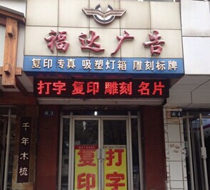 張家口市宣化盛景裝飾工程有限公司(福達廣告)從事廣告製作行業17年,具有廣泛的經營領域,對員工以人為本,關愛關懷,提倡認真工作,快樂生活,主要經營門頭牌匾、室內宣傳牌、條幅、打字、複印、傳真等等。